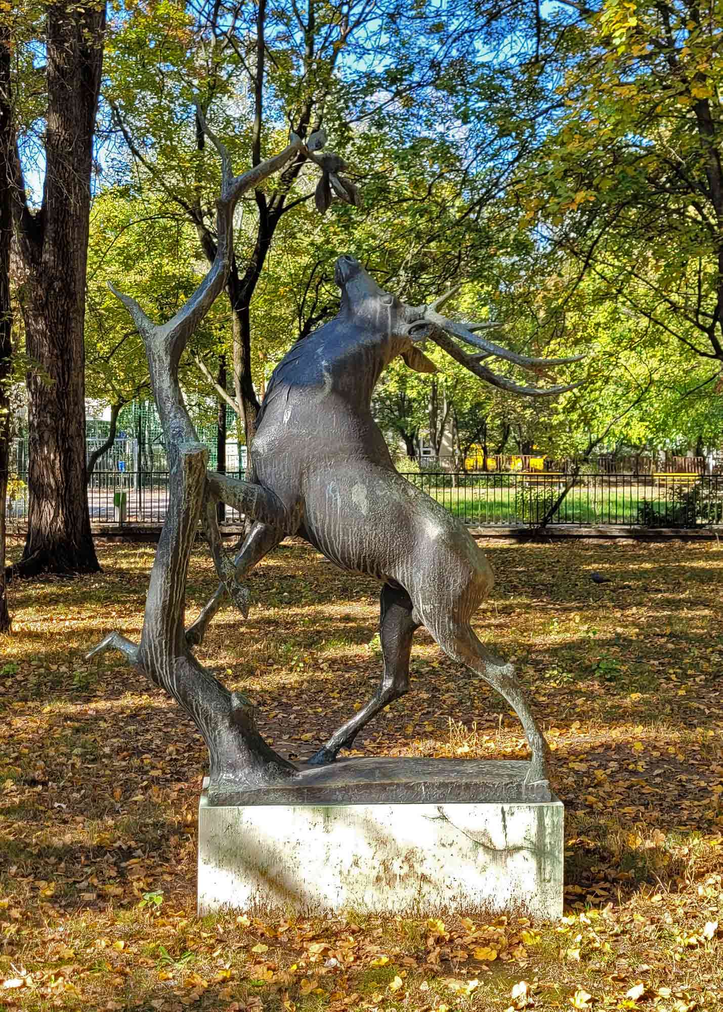 A szobor Turcsányi Árpád alkotása, amely az Őrjárat u. 4/b. kertjében, az épület mögötti fák alatt bújik meg. 1959-ben adták át (Ágaskodó szarvas).