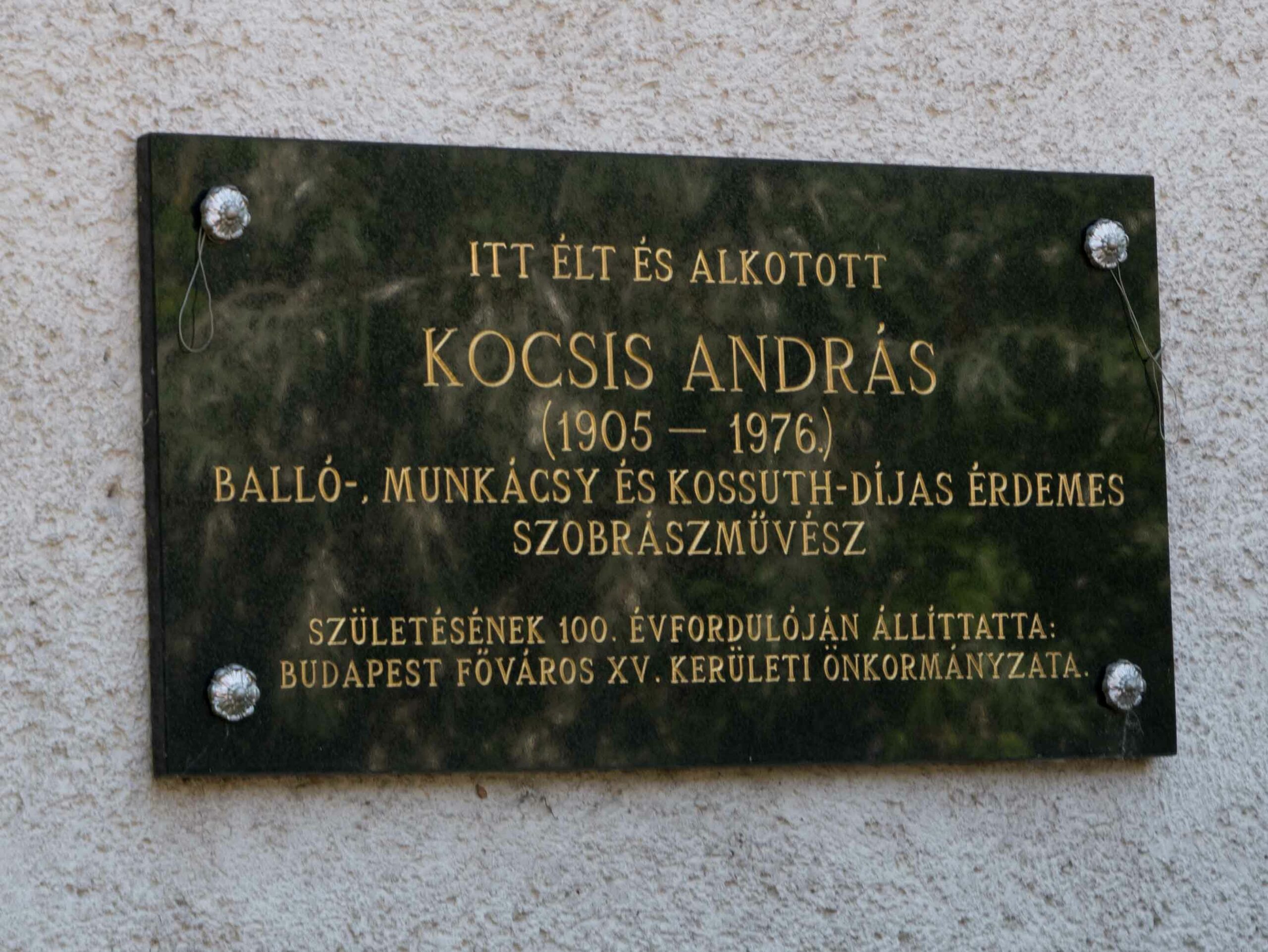 Az emléktábla a Batthyány utca 41-es számú ház falán található, mely egykor Kocsis András szobrászművész műterme és bérlakása volt. Az emléktáblát 2005-ben állíttatta a XV. Kerületi Önkormányzat, a művész születésének 100. évfordulója alkalmából.