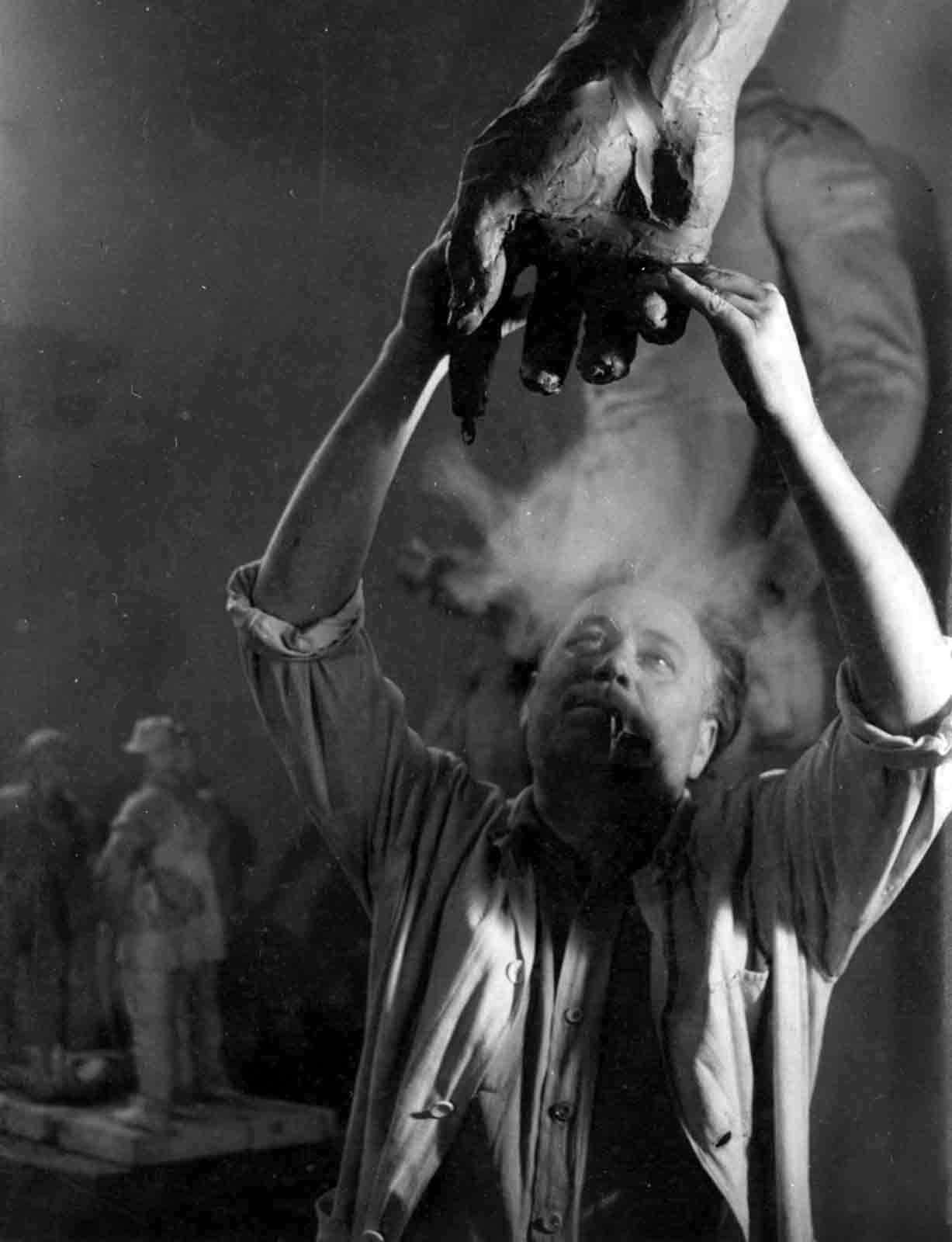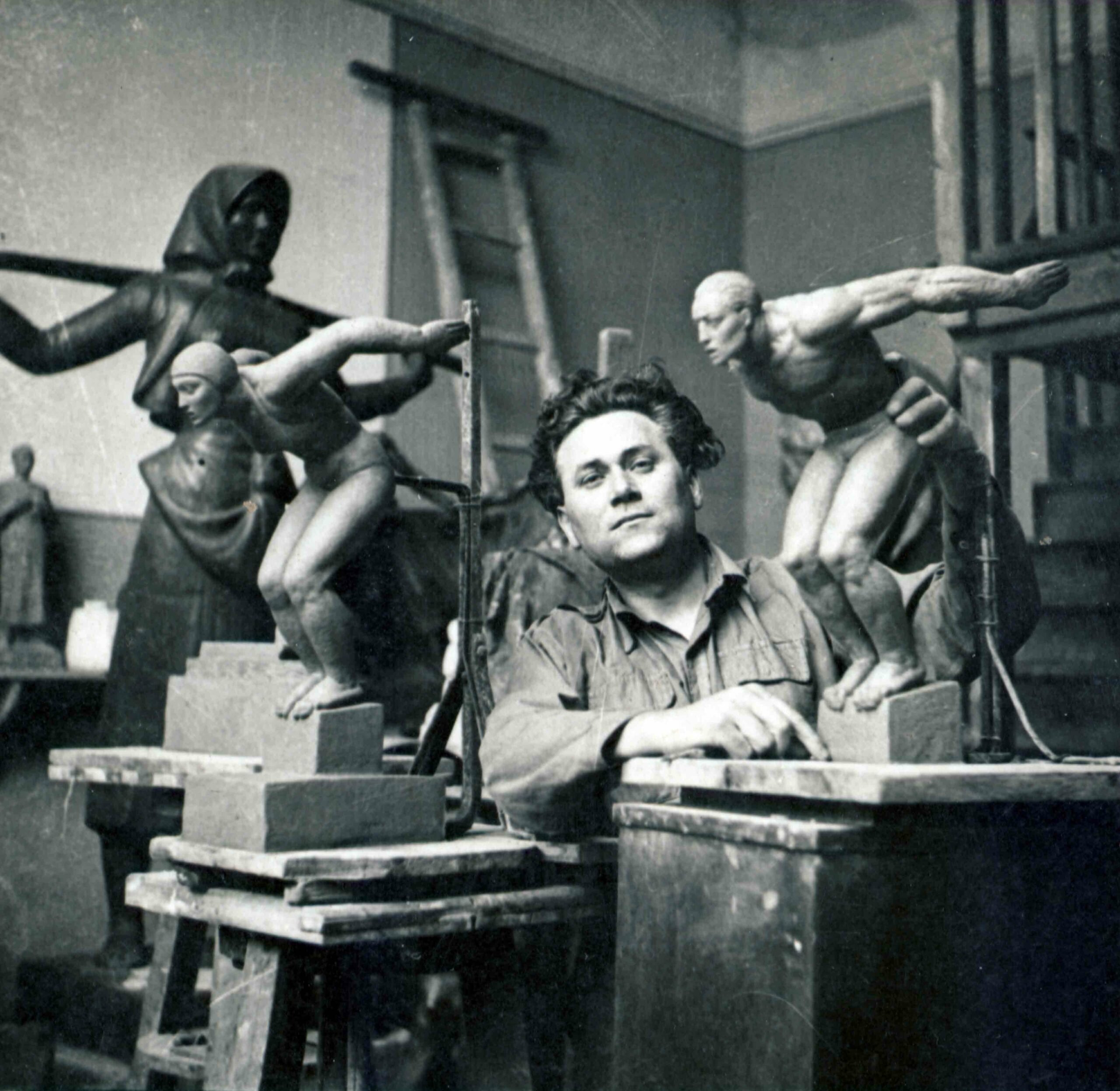 Önállósulása után a 40-es években bontakozott ki sajátos művészete. 1940-ben készítette egyik legjelentősebb alkotását, a budapesti Sportcsarnok 18 m hosszú, harminckét alakos alumínium reliefjét, miután megnyerte az Országos Testnevelési Tanács pályázatát. A dombormű a sport történetét jeleníti meg a legrégibb időktől a közelmúltig.
