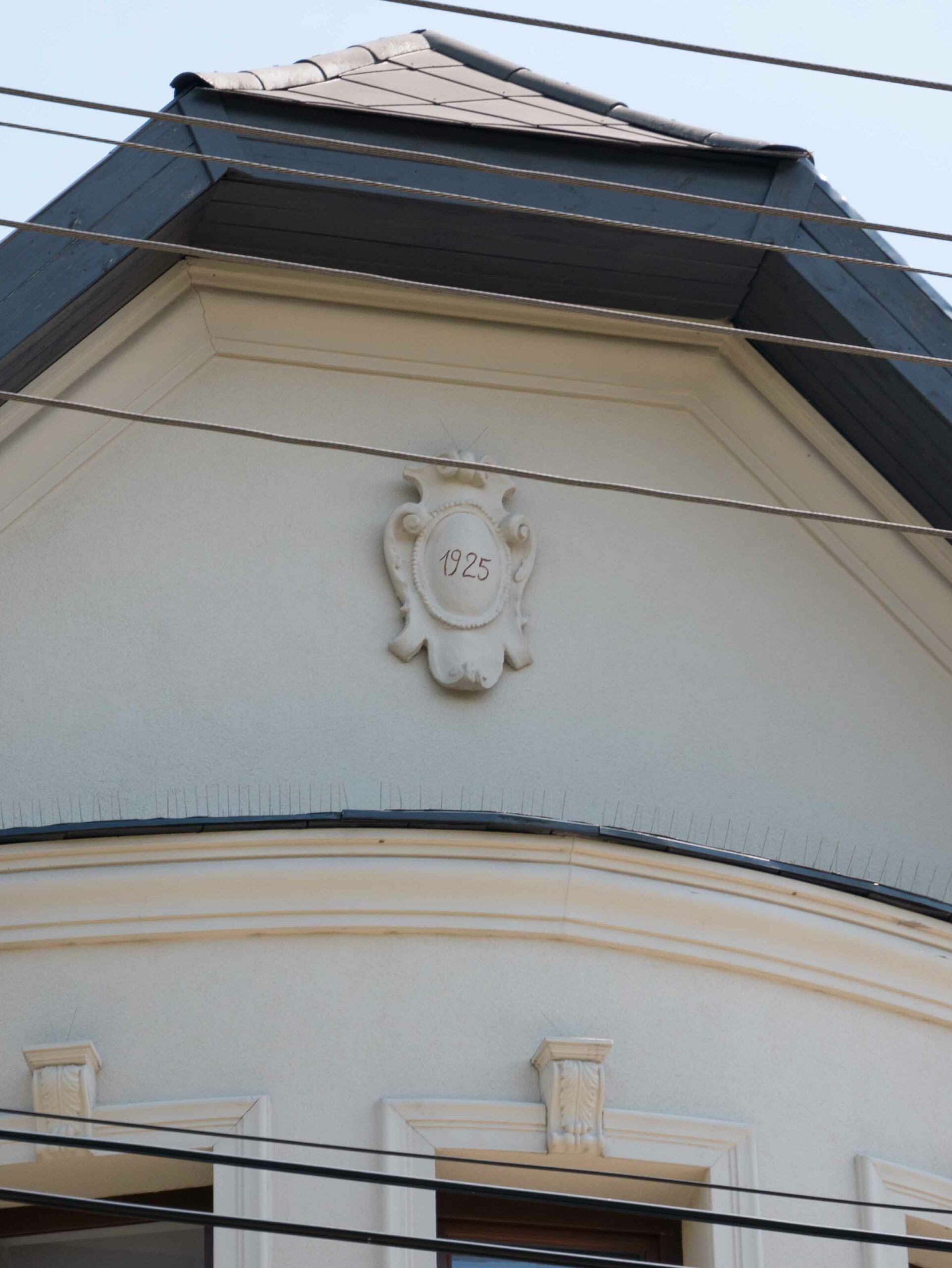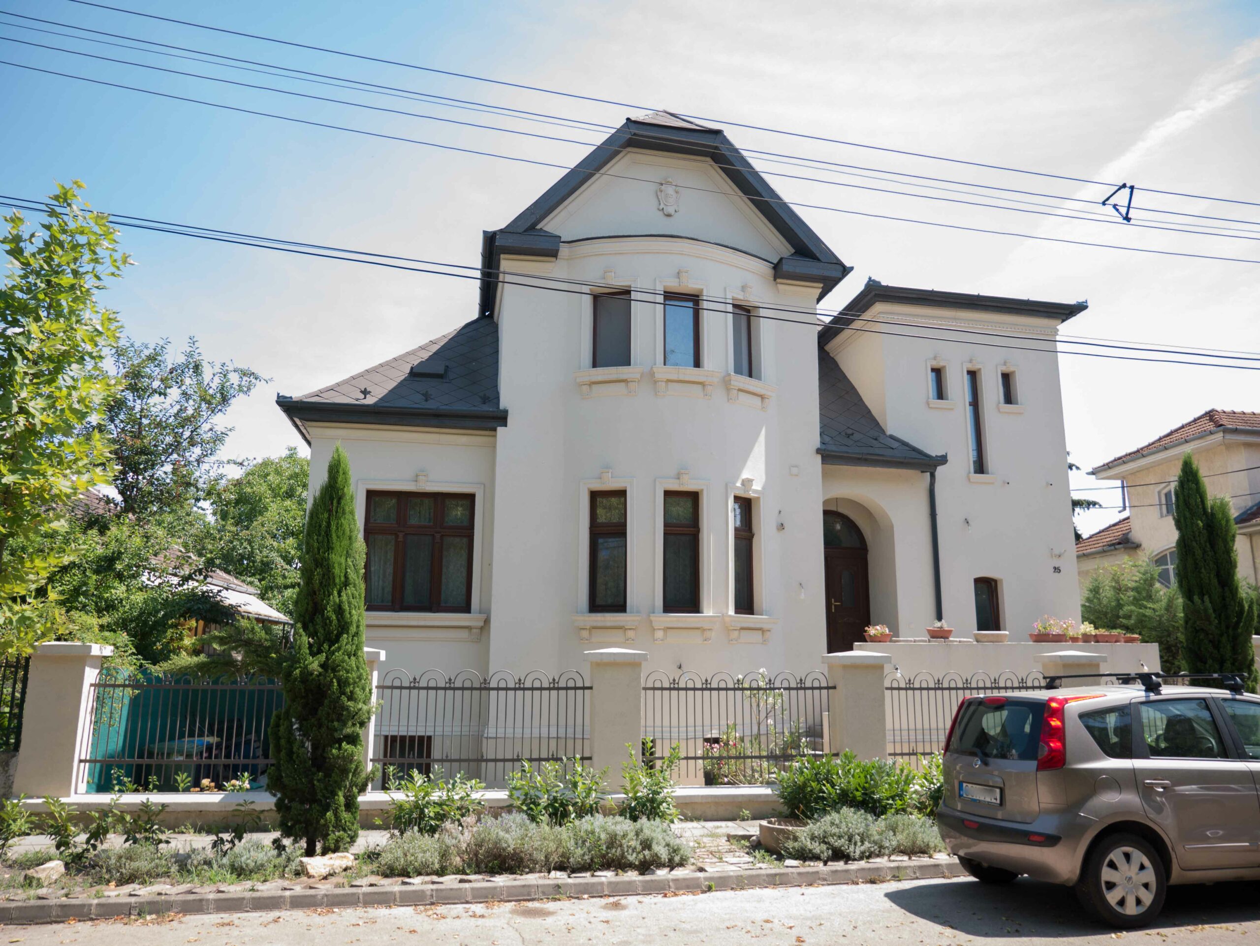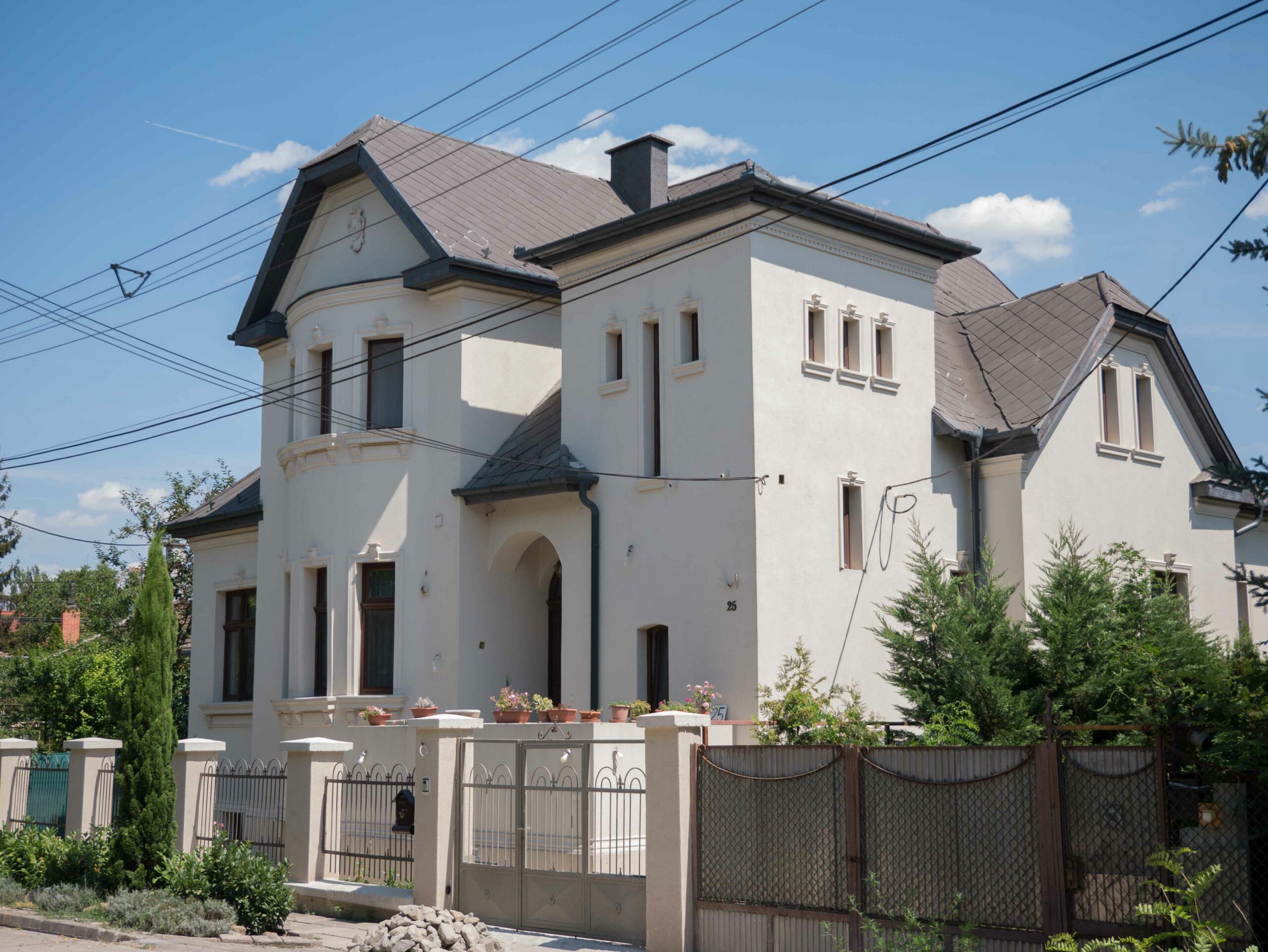 „Utcaképben jelentős szerepet játszó, előkertes, szabadon álló, igen mozgalmas tömegű és tetőzetű, tornyos, emeletes szecessziós nyaralóvilla. Rusztikus kőlábazatú erősen kiemelt alagsori szint. Torony párkánya alatt végigfutó szecessziós fríz. Eredeti, téglaoszlopos, kőlábazatos kerítés (a kocsi behajtó kapuja új). A lépcsősen megközelíthető bejárat kialakítása azonos a Pozsony utca 26/a-b villáéval.” (Perczel, 2010)